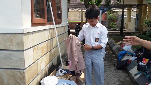 "Selain nasi bungkus dan susu kedelai, kami juga donasikan seragam sekolah kami kepada yang membutuhkan. Seragamnya terkumpul 500 stel," kata Adam saat pemagian nasi bungkus di Jalan Malioboro, Yogyakarta.